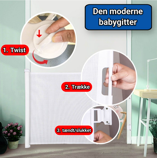 En børnegitter rulle er et smidigt og fleksibelt børnegitter, som kan monteres i dørkarme, trapper, indgangspartier eller andre indgange med en maksimal bredde på 150 cm. Som navnet afslører, fungerer dette gitter ligesom et rullegardin, der nemt kan trækkes ud og justeres til præcis den bredde, du har brug for. Rullegardiner har derimod en tendens til at smække hårdt i, hvilket du ikke behøver at bekymre dig om i dette tilfælde. Babygitteret har en skruelåsfunktion, som stopper gitteret i den ønskede bredde. Denne moderne rullegardinlåge er ny på markedet og er lavet af slidstærkt materiale, så den holder længe. Desuden er lågen meget diskret og knap nok synlig, når den ikke er åben.